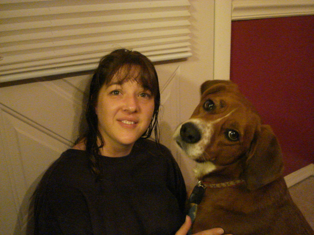Imagine my husband’s surprise when I asked him to run upstairs and snap a picture of Chloe and I. Surprised, because as he put it, “Your hair is wet and your make-up is gone“. Actually he may have said, “Your face is gone (like the transplanted southern boy that he is), but I think the look on my face when I asked him to repeat what he said, made him change what came out of his mouth!