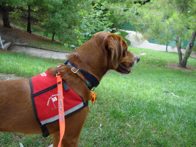I have heard people with hearing loss bemoan how difficult it is to carry on conversations when there is a “hub bub” of chatter around them. Sure, I may have a special program on my cochlear implant to help eliminate background noise, but it is not perfect! It is hard to concentrate on the speaker! Add to that trying to make sure your partner is in a safe place, only adds to the stress level a bit. So although Chloe eliminates much of the stress in my life, it can add to it as well. I don’t know that there is a good solution for “group meet and greet” for a person with hearing loss also partnered with a dog. (I’m open to any ideas though – grin).